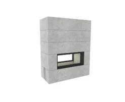 Die Verkleidung des Kamins besteht aus ShapeStone Light, einem leichtem Material mit Faserarmierung, das langlebig und stabil ist. Die Verkleidungselemente sind montagefreundlich und können einfach und schnell installiert werden. Nach der Montage kann der Kamin mit einer hitzebeständigen und feuerfesten Farbe individuell gestaltet werden, wobei die graue Betonfarbe von Nordpeis empfohlen wird. Eine optionale Vorlegeplatte aus transparentem Glas rundet das stilvolle Aussehen des Kamins ab.