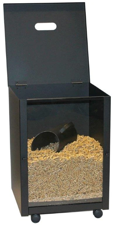 Schwarze Pelletbox 30 kg, eckig – mit Rollen