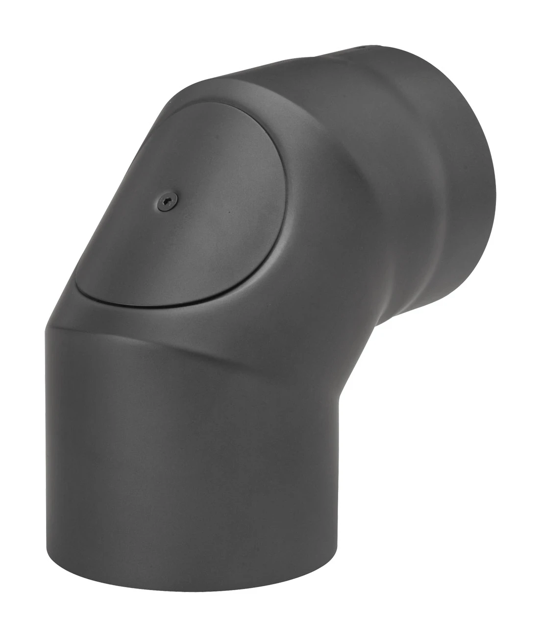 Rauchrohrbogen 2 x 45° mit Tür kurz – schwarz