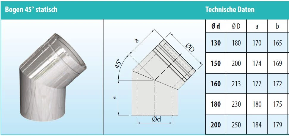 Schornstein Winkel 45° statisch doppelwandig – eka cosmos D 25