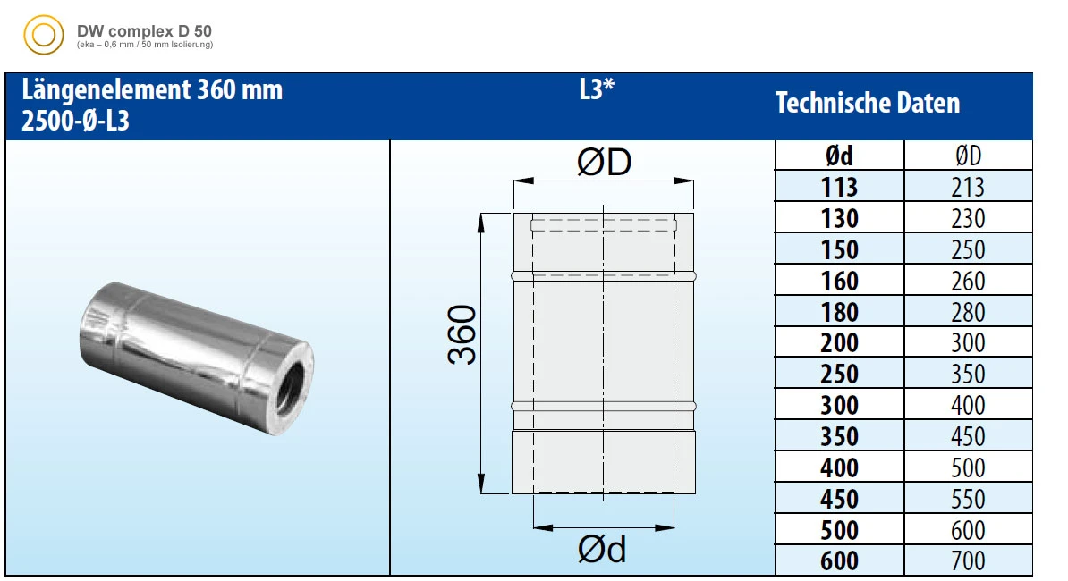 Schornsteinrohr 360 mm verkupfert / doppelwandig / eka complex D 50
